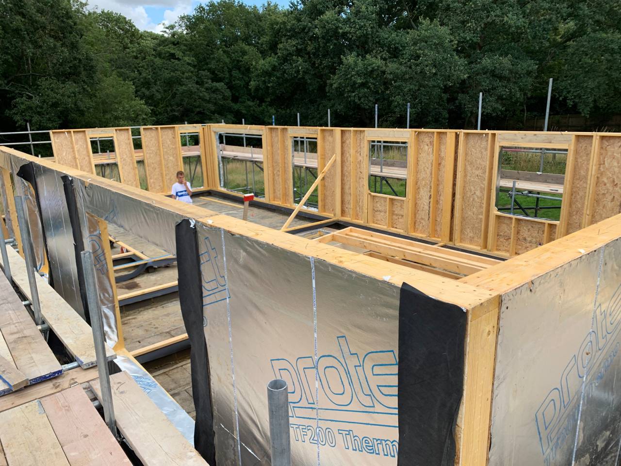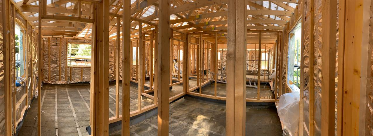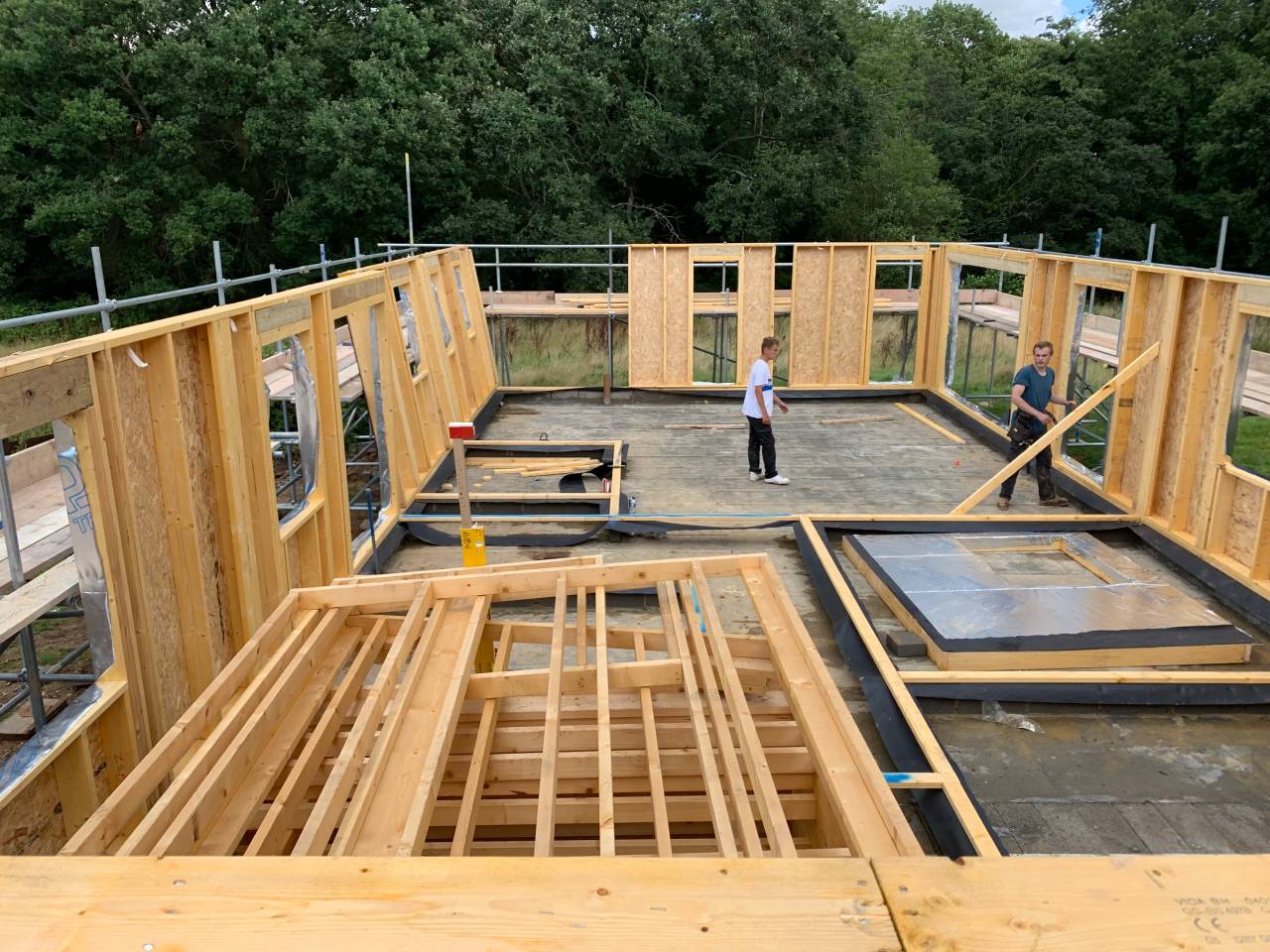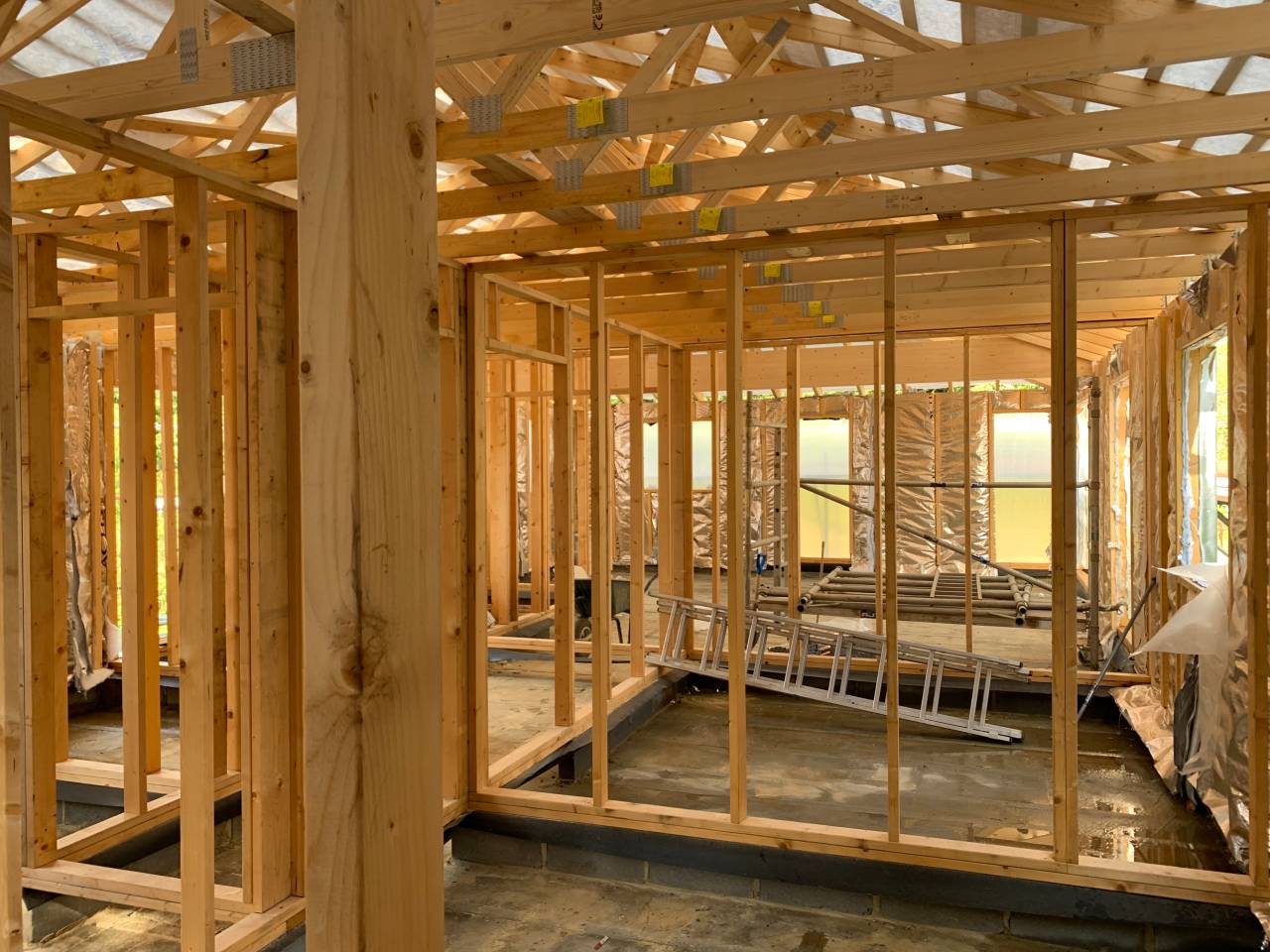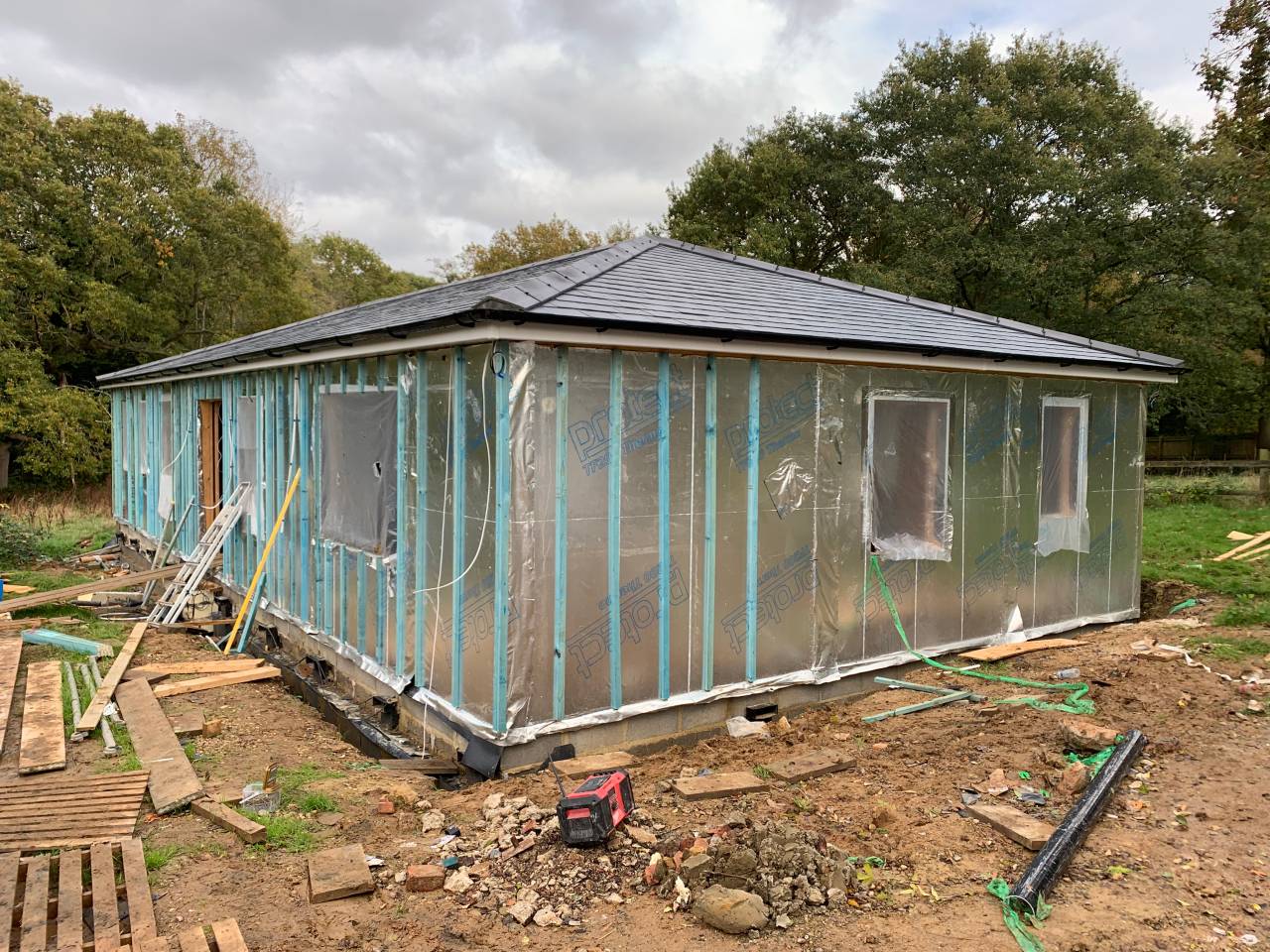 This involved knocking down an existing bungalow and replacing with a new timber framed bungalow to a larger footprint. Details of the build can be seen in our video section.