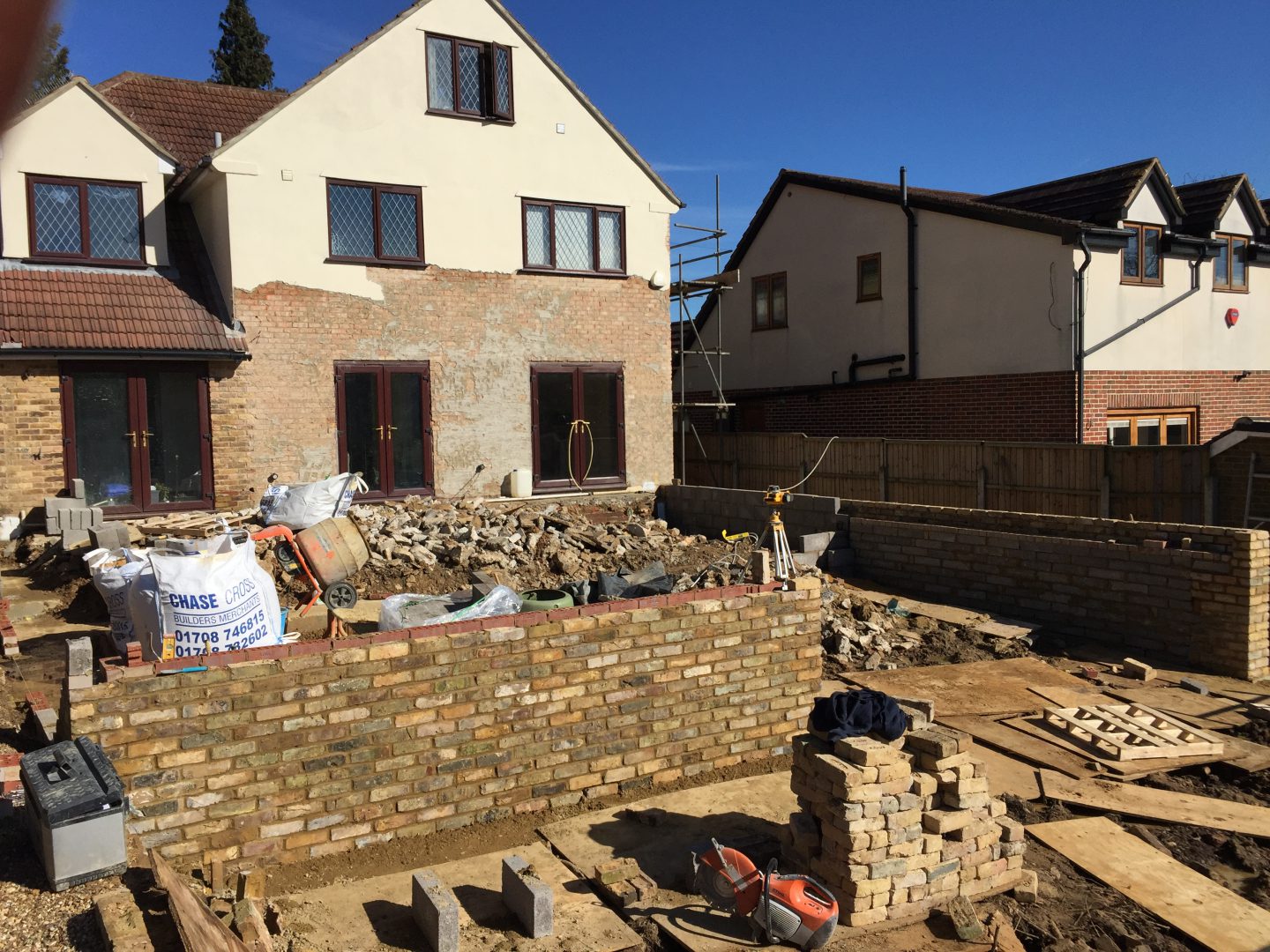 New blockwork walls forming the new extension with openings for new windows and bi fold doors.