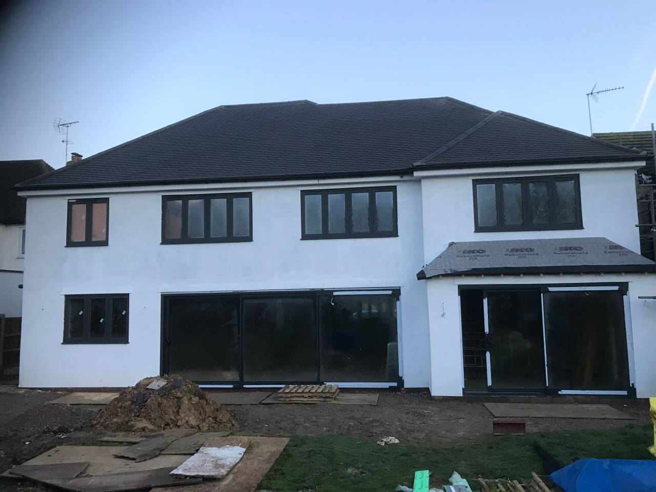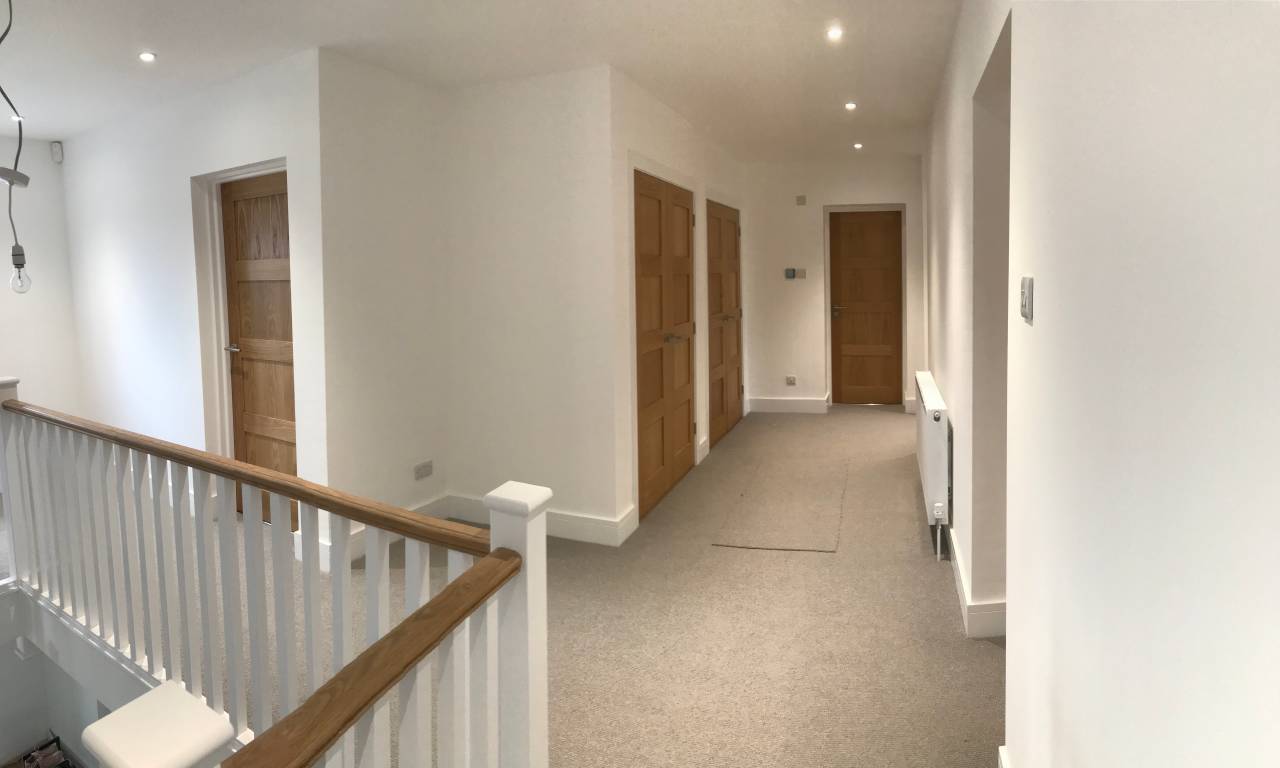 This project required the removal of the existing roof structure with two story extensions to the sides and rear to provide a 5 bedroom detached family home. The existing house was completely refurbished with new windows and bi folding doors. New heating and hot water system with underfloor heating and tiling throughout the kitchen / family room area. See the project details in or video section
