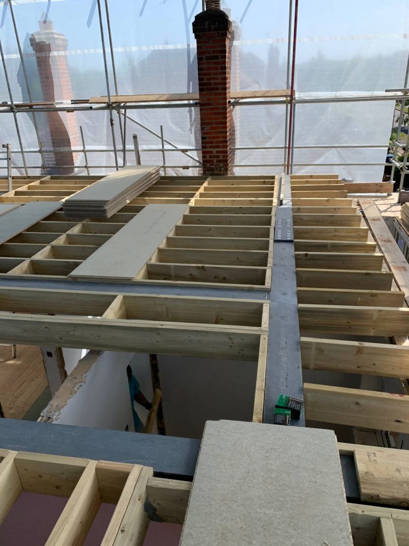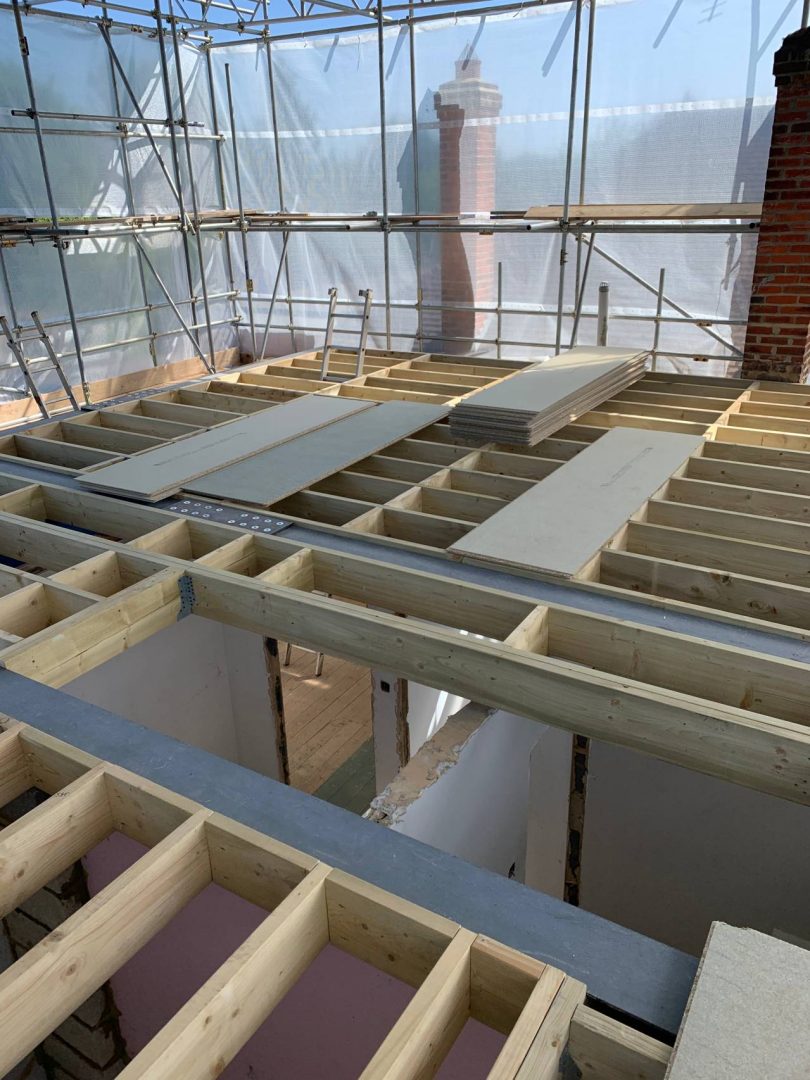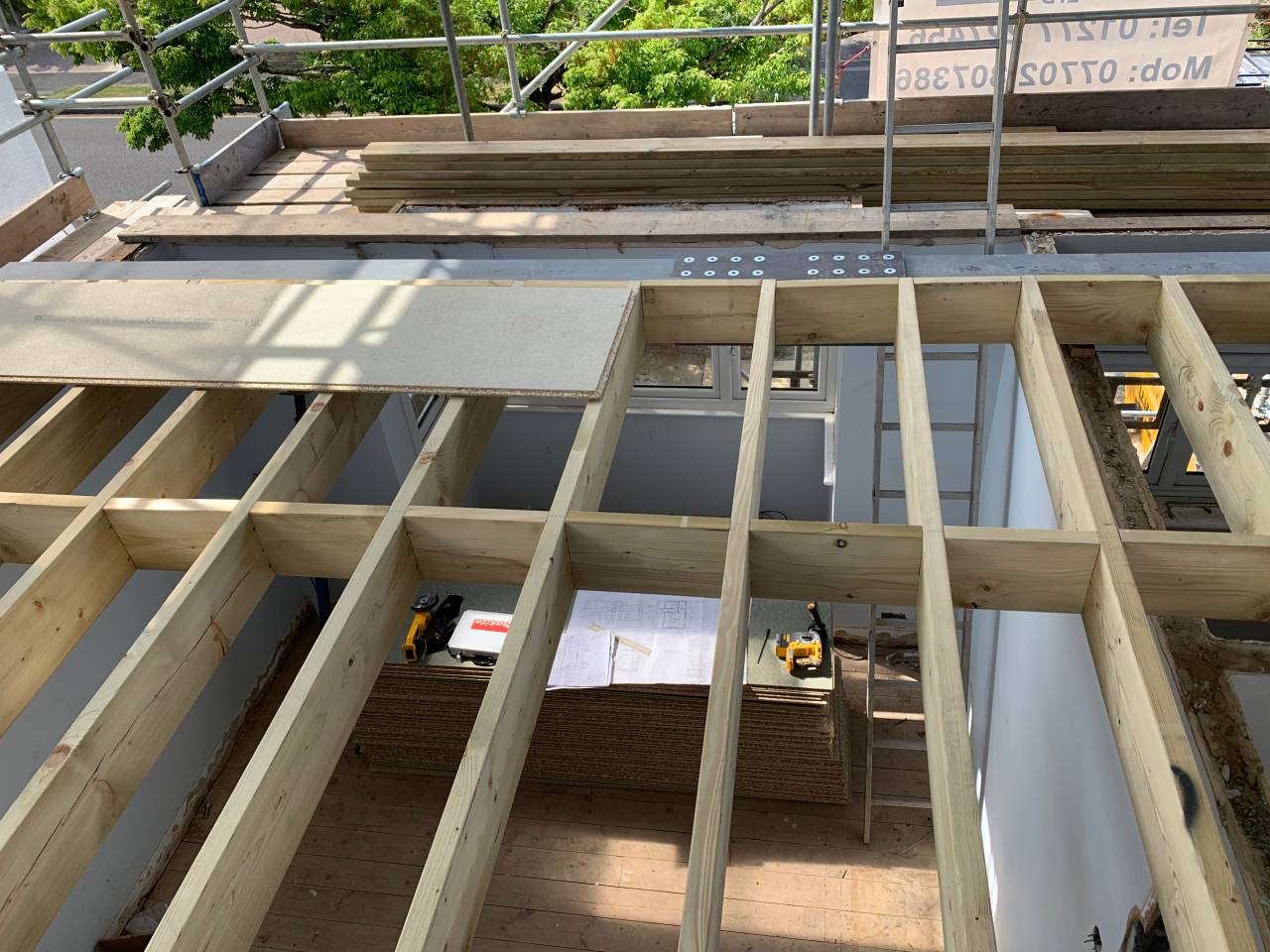 This project involved the removal of the existing roof. A new loft conversion, rear extension and complete refurbishment to the existing house to provide a 4 bedroom family home.  Watch the story in our video section